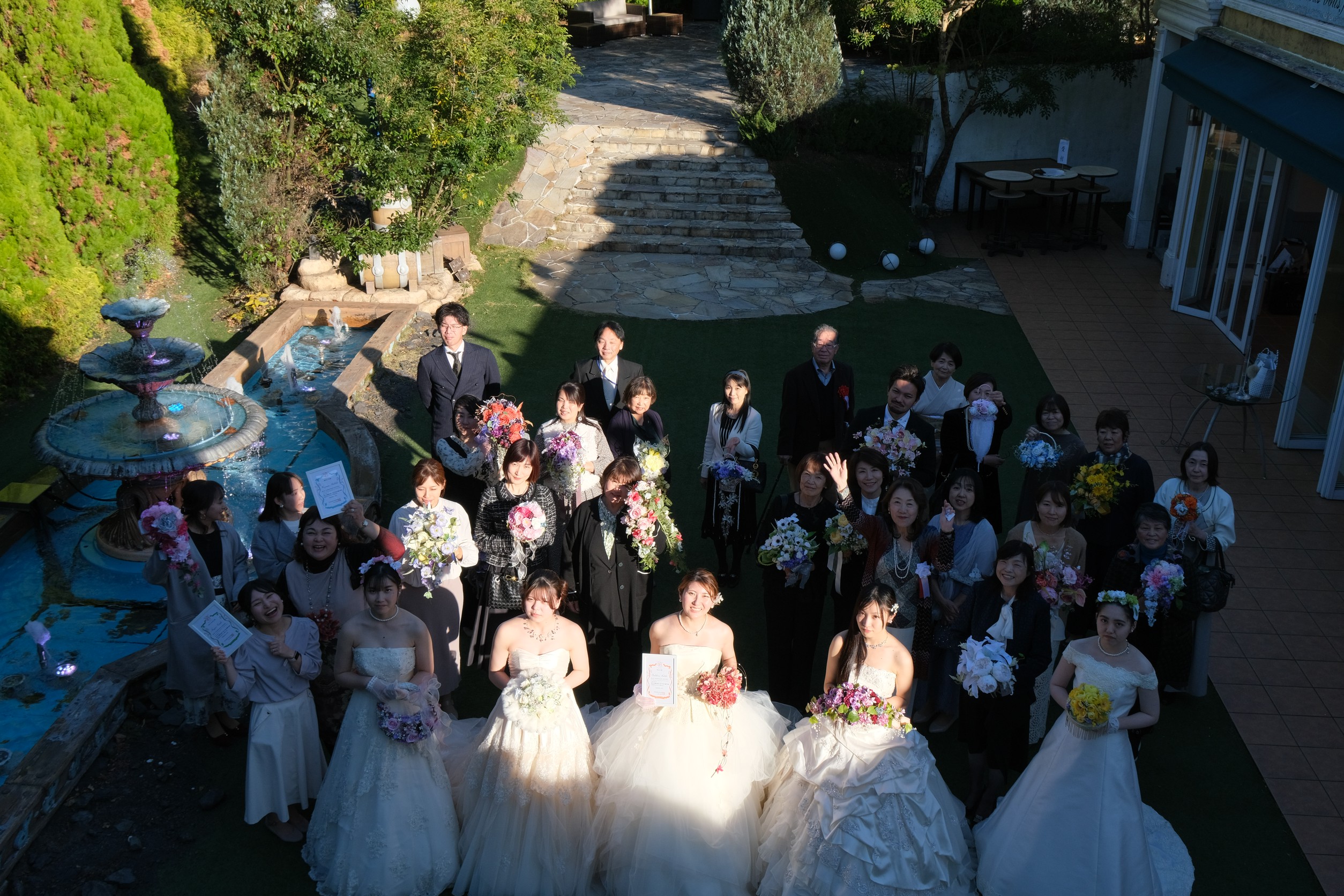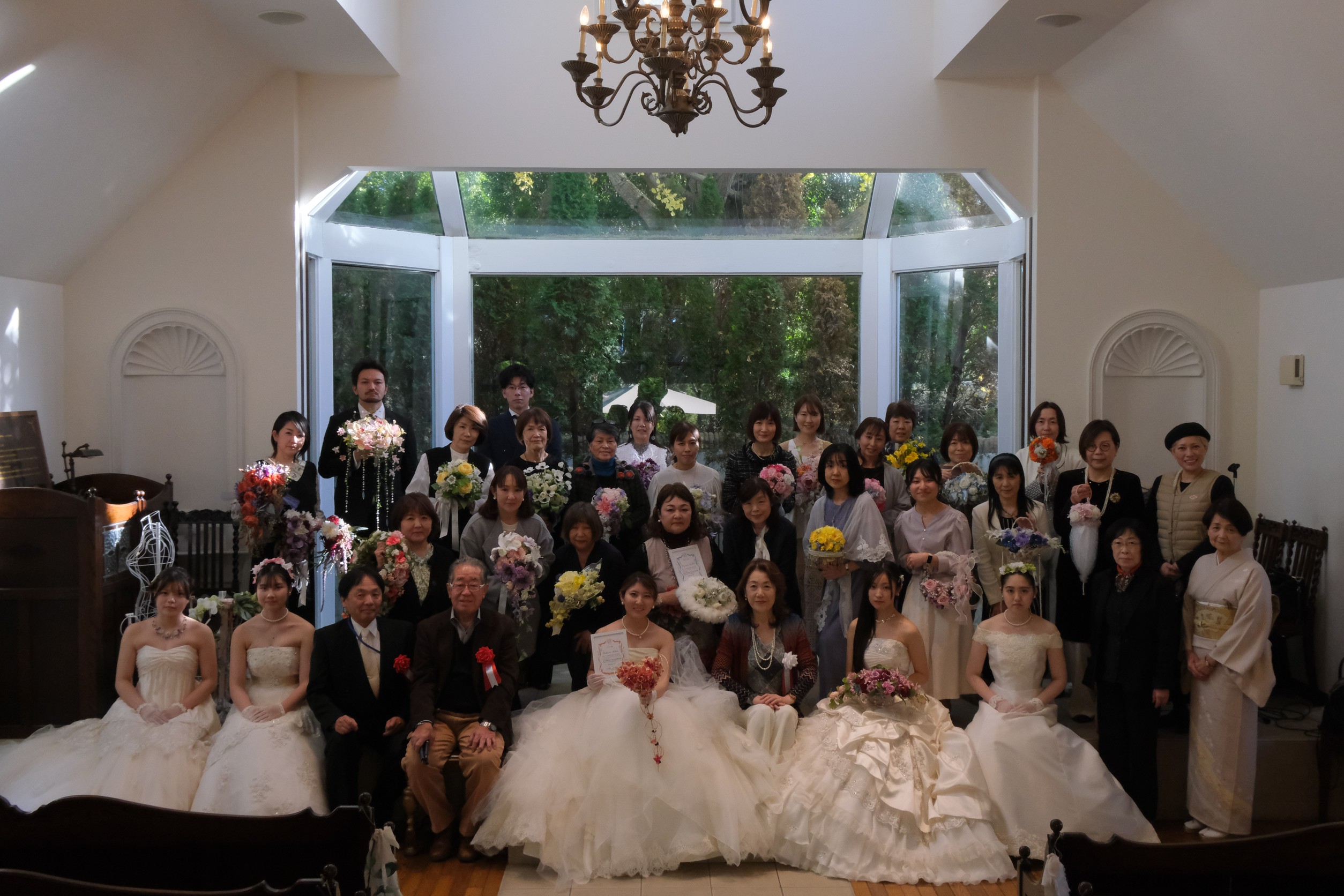 ブーケコンテストの表彰式の後、チャペルにてみなさまの素敵なブーケに囲まれて、カメラマンさんに集合写真を撮影して頂きました。