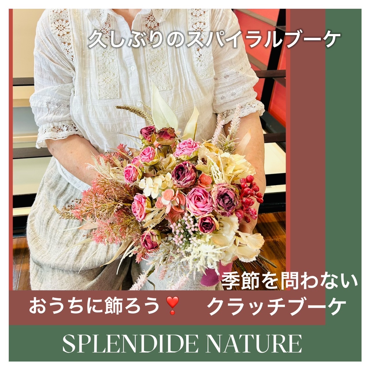 こんにちは🌹みなさま SPLENDIDE NATURE代表の小泉昌代です。 昨日はウェディングディプロマコースのレッスン日でした。 生徒様とクラッチブーケを作りながらお話しをしながら人生の勉強まで💖させていただきました。 … 続きを読む 自分の時間は作るもの🌸