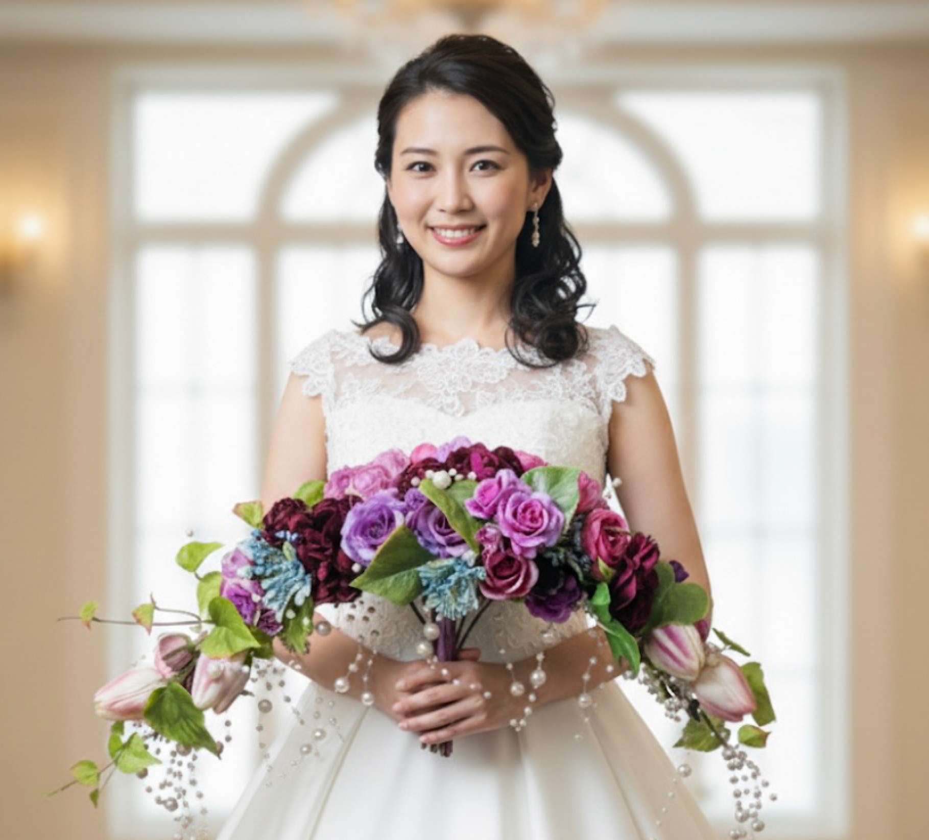 パールが揺れるホリゾンタルブーケ