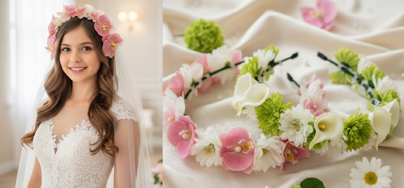 カチューシャからネックレス。ホリゾンタルブーケアクセサリーテクニックまで』